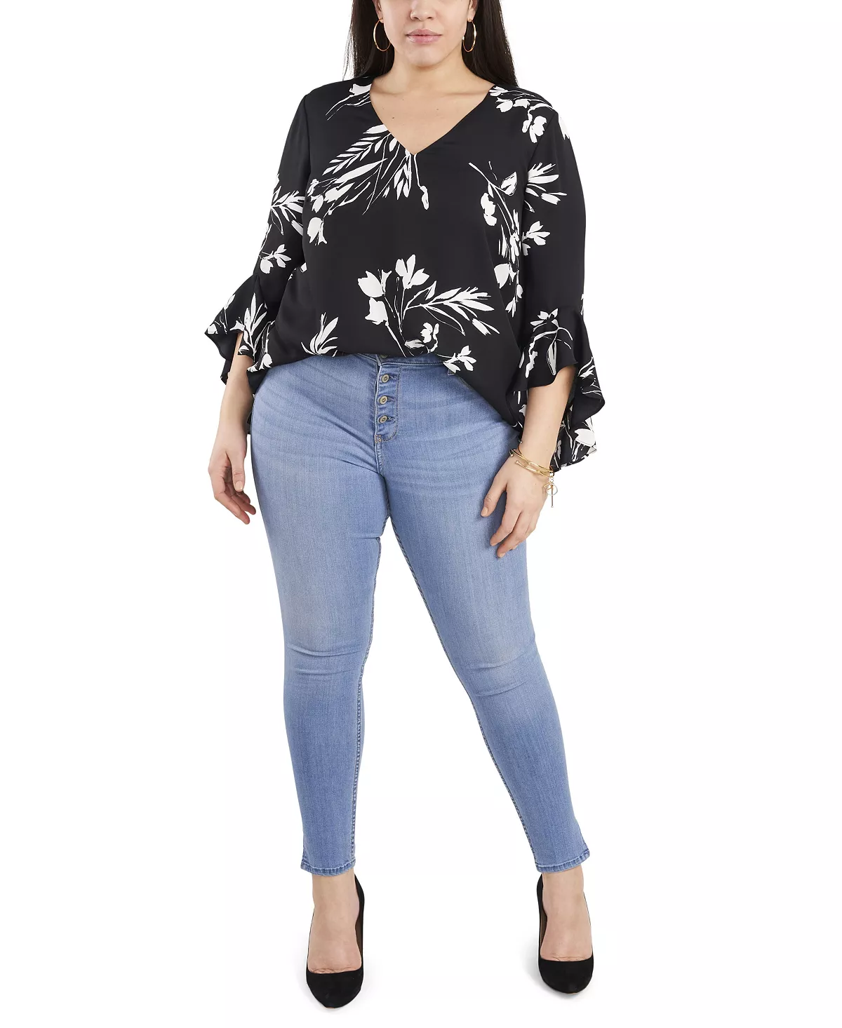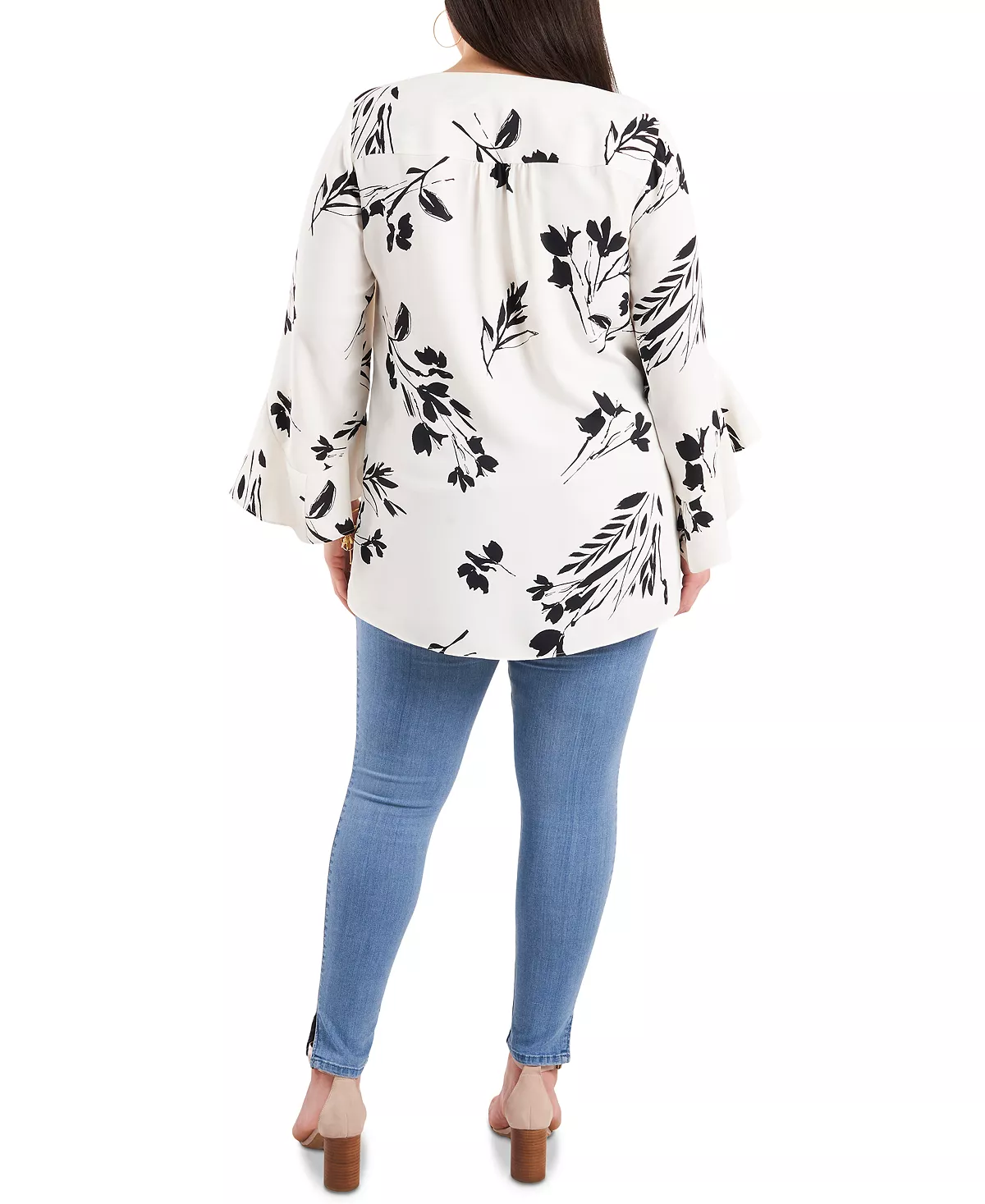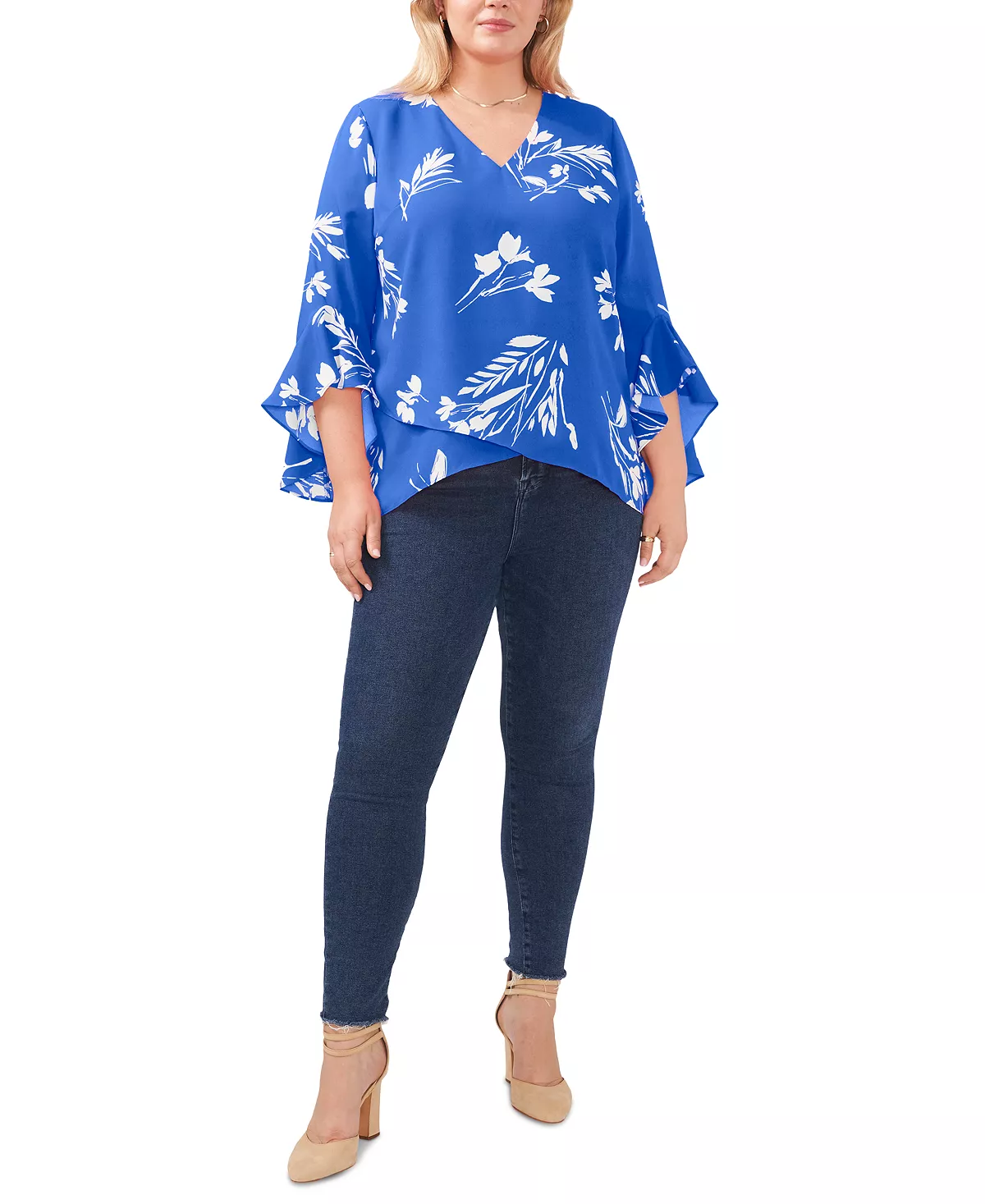 Vince Camuto’s flutter sleeve floral tunic is this season’s must have. This is the perfect wardrobe addition to take you from work to weekend.