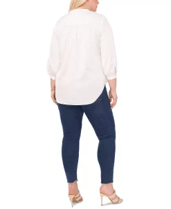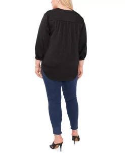 A subtle jacquard patterned fabric elevates this plus size V-neck blouse from Vince Camuto.