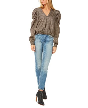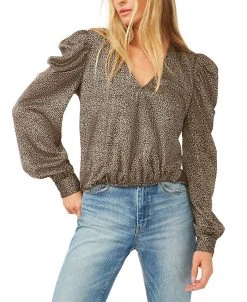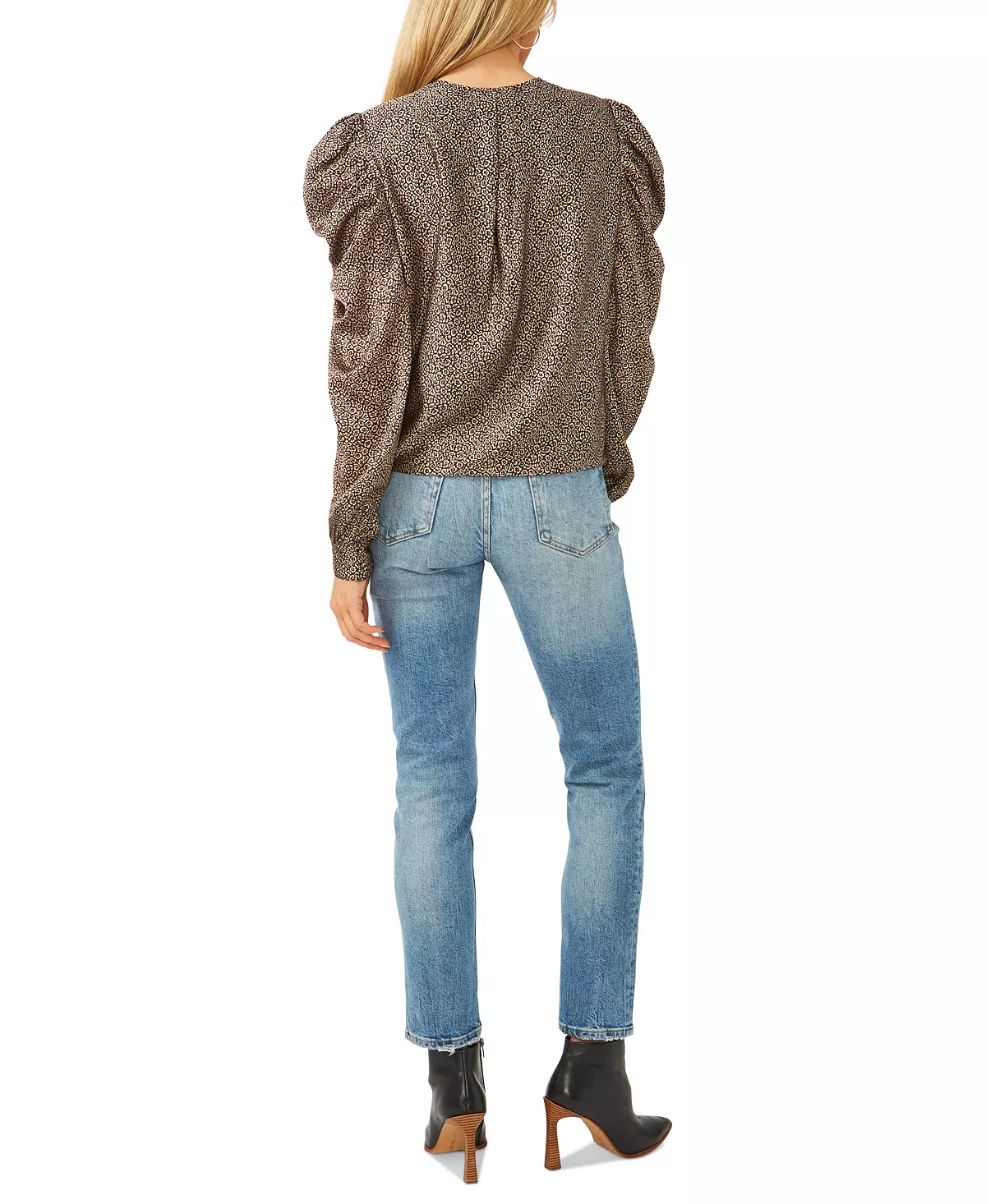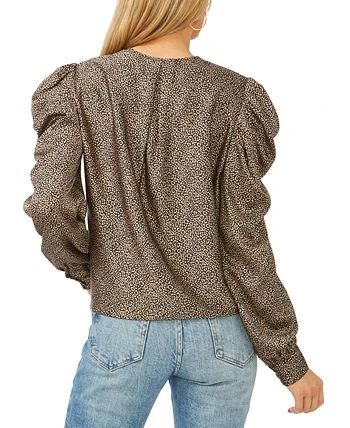 Vince Camuto updates a classic faux-wrap design with dramatic puff-sleeves and an always fashionable animal print.