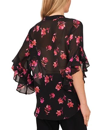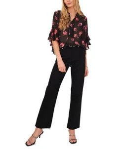 A lovely look with vibrant abstract florals, this Vince Camuto top features charming pintucks and soft flutter sleeves.