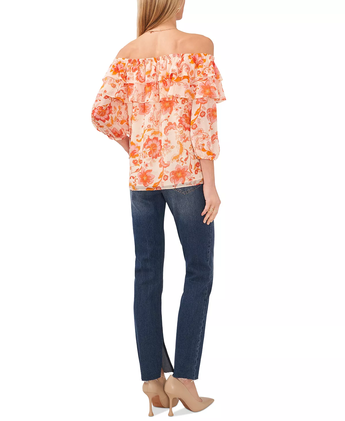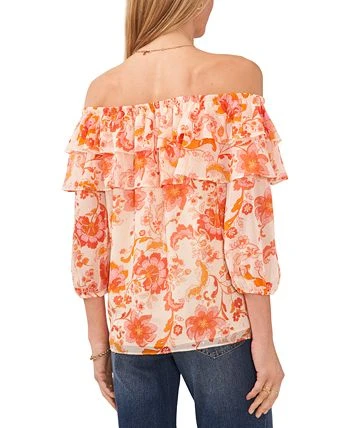 Flouncy ruffles accentuate an off-the-shoulder neckline on this fun, flirty top from Vince Camuto.